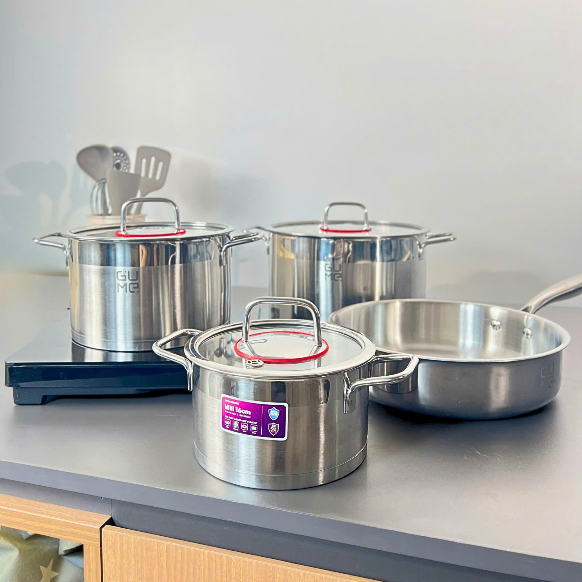 Bộ nồi 5 đáy JEJU không chỉ đa dạng về kích cỡ mà còn mang đến sự tiện ích vượt trội cho mọi nhu cầu nấu nướng: