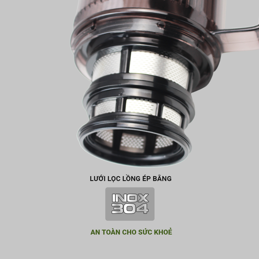 Lưới lọc được làm từ inox 304 cao cấp. Các chi tiết làm bằng chất liệu nhựa là nhựa nguyên sinh cao cấp không chỉ an toàn cho sức khỏe khi sử dụng mà còn tạo nên nét đẹp của một thiết bị điện cao cấp trong những không gian bếp hiện đại.