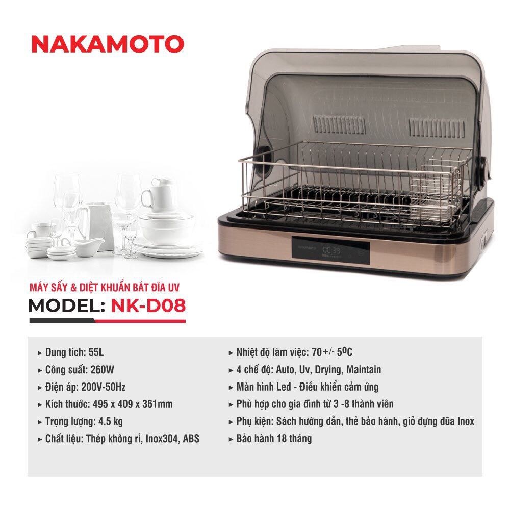 Máy sấy diệt khuẩn bát đĩa Nakamoto NK-D08 Thương hiệu Nhật Bản