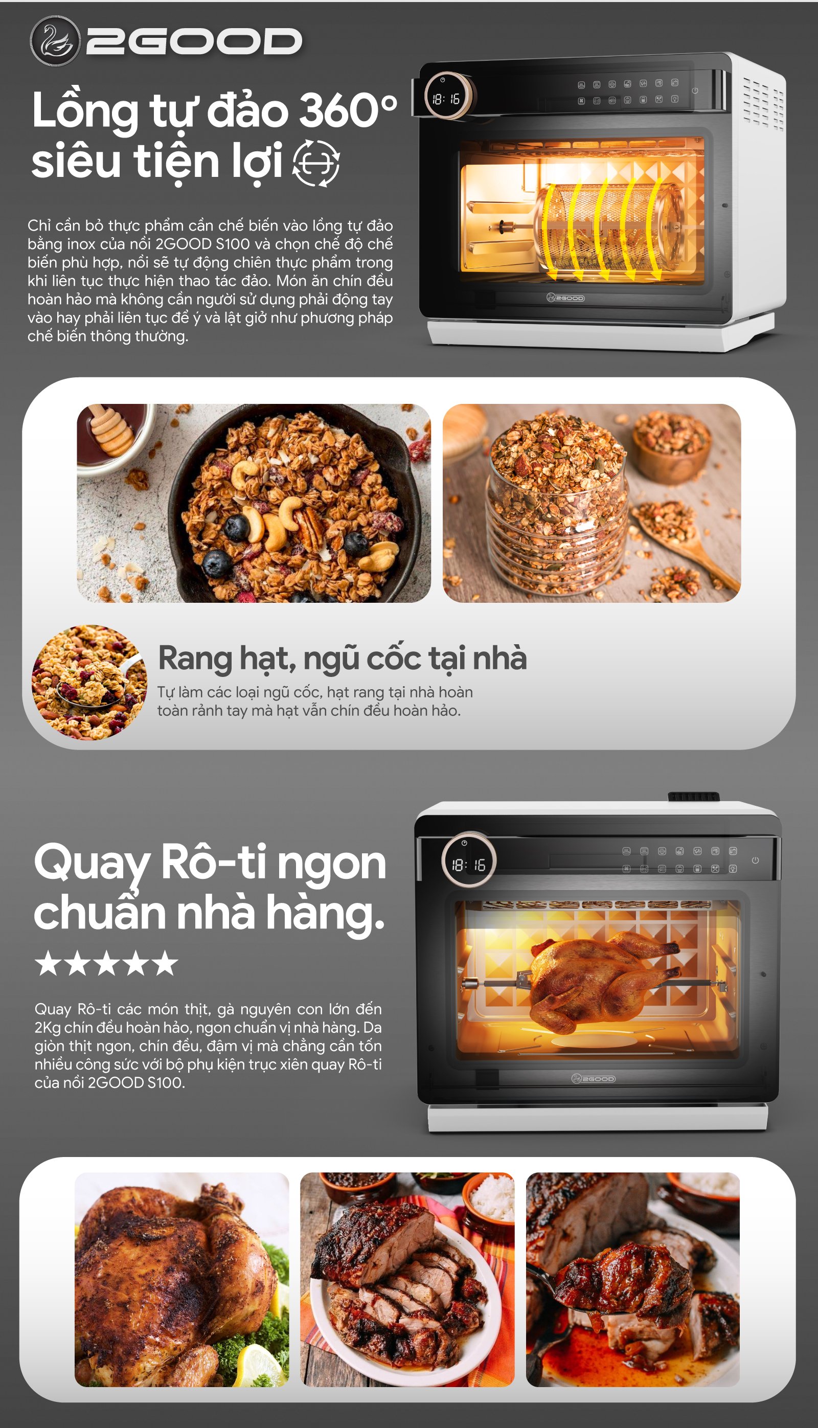 Hướng dẫn sử dụng nồi chiên hơi nước 2Good S100