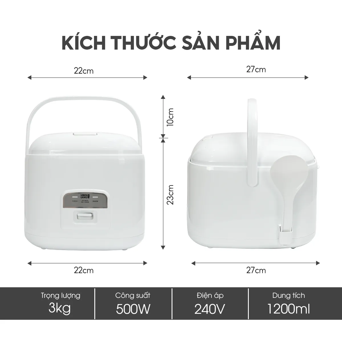 Nồi cơm điện Lebenlang dung tích 1200ml, công suất 500W - LBL0587, bảo hành 2 năm, 1 đổi 1