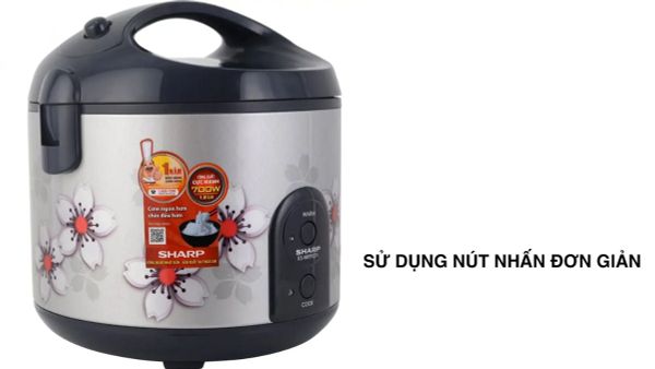 Người dùng có thể sử dụng nồi cơm điện Sharp này đơn giản, bằng cách nhấn nút trên thân nồi. Sản phẩm cung cấp 2 chế độ cơ bản, nấu cơm và hâm nóng tiện lợi.