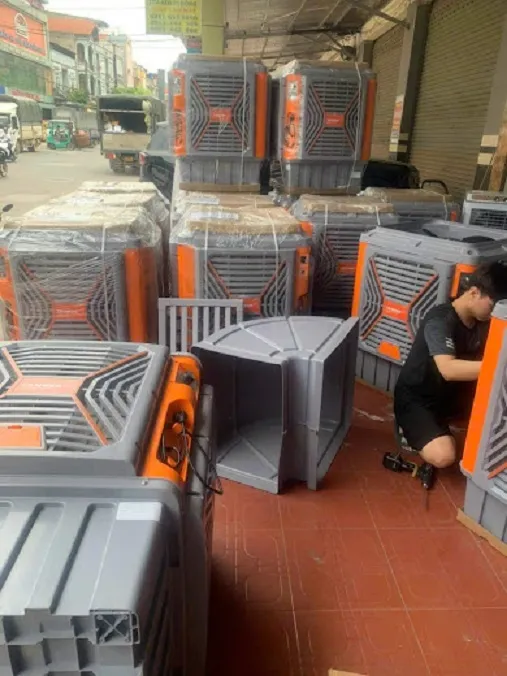 - Quạt điều hòa làm mát thay cho điều hòa không khí. Bộ lọc Hepa kết hợp với hơi nước giúp không khí trong lành hơn, có bánh xe thuận tiện di chuyển, tiết kiệm chỉ khoảng 3KWh cho 4 tiếng sử dụng, có đá khô làm mát nhanh và sâu. Trang bị phao tự ngắt khi bình chứa nước dưới mức quy định.